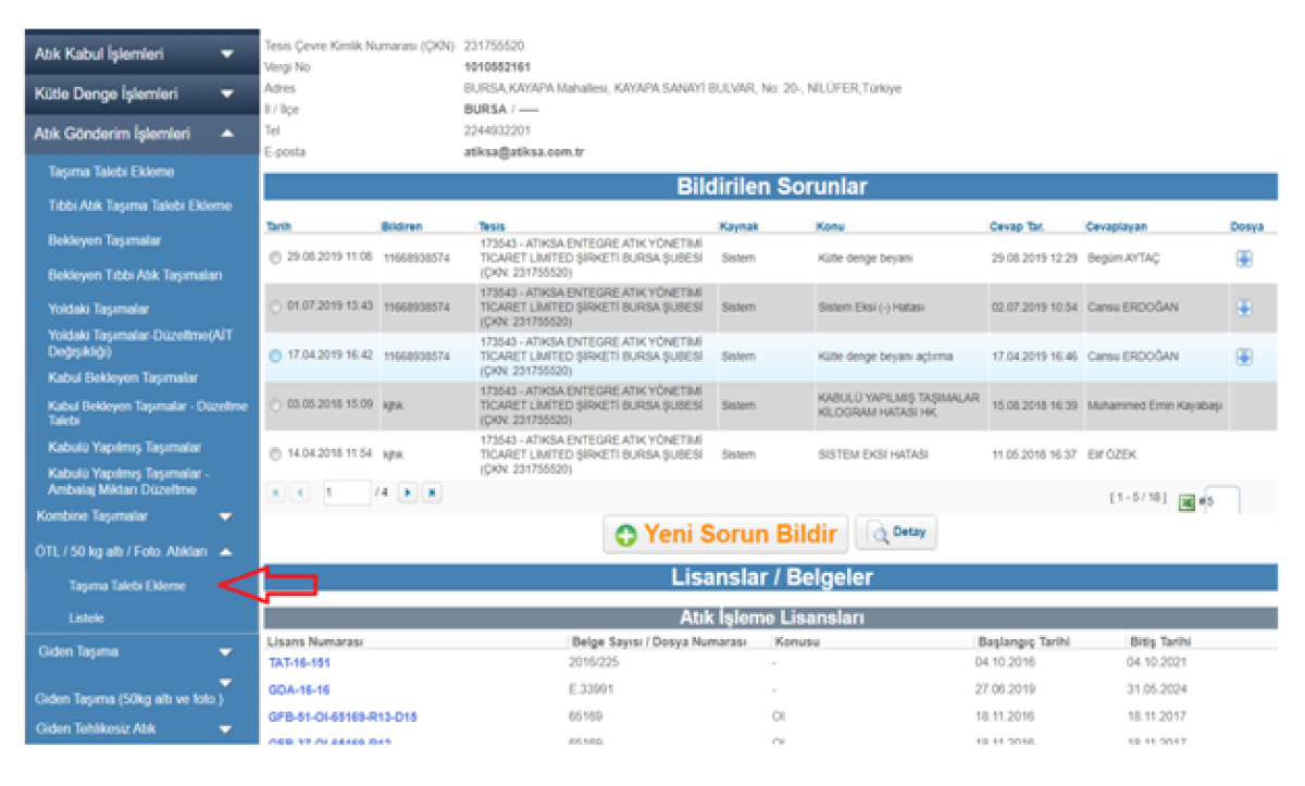Atık Taşıma Talebi Oluşturma Kılavuzu: